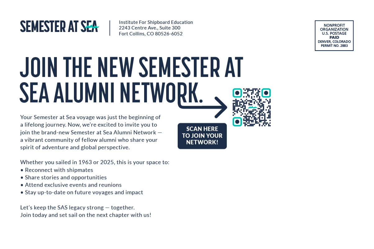 Postcard design for Semester at Sea's Lifelong Learner program that was sent to approximately 8,000 recipients. I used a 100 lb. cover weight and coated on the photo side, uncoated on the mailing side.