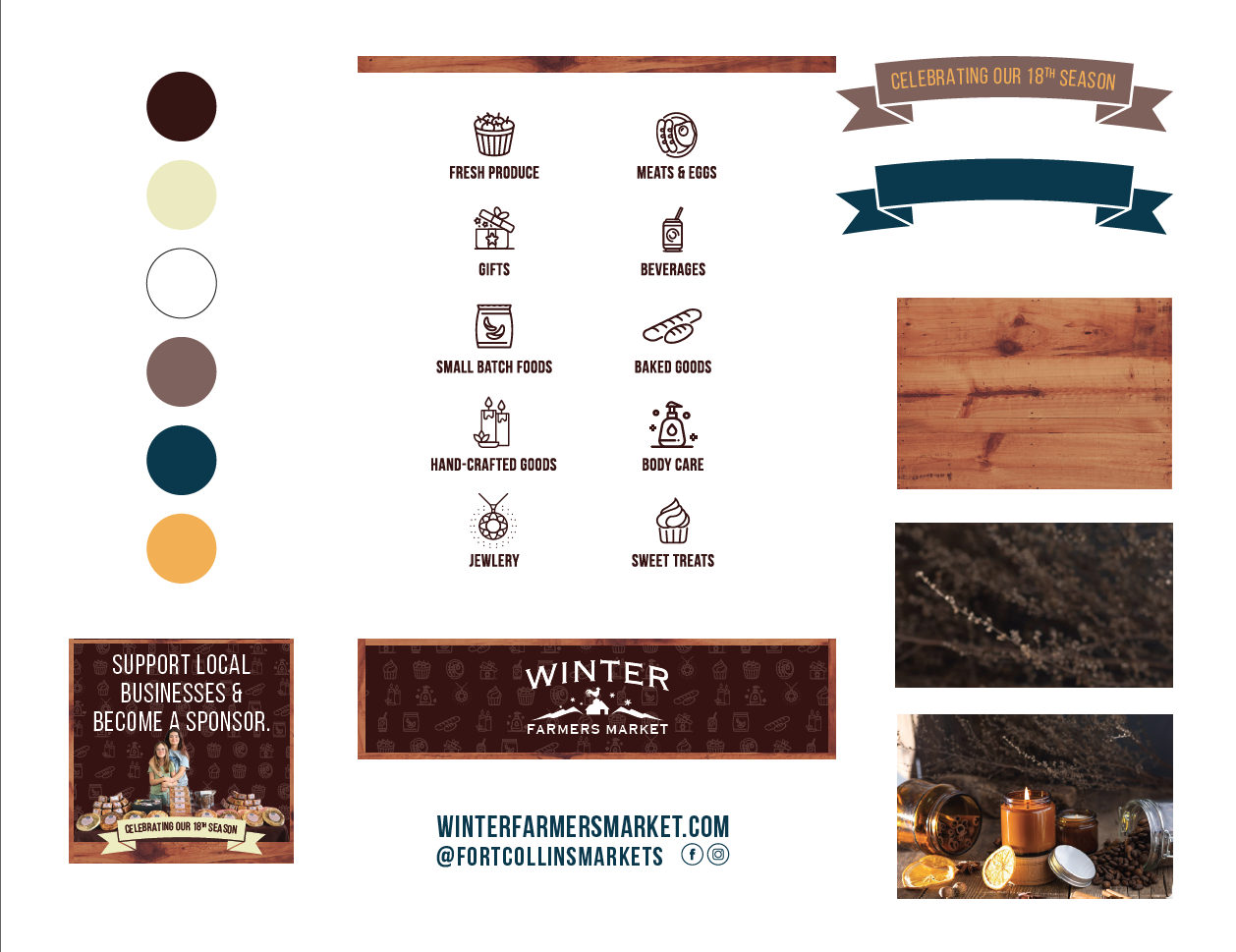 Winter Farmers Market Seamless Instagram panorama Social media graphics + brand development Brand development elements for use in Canva Print rack card front Print rack card back Email header graphic